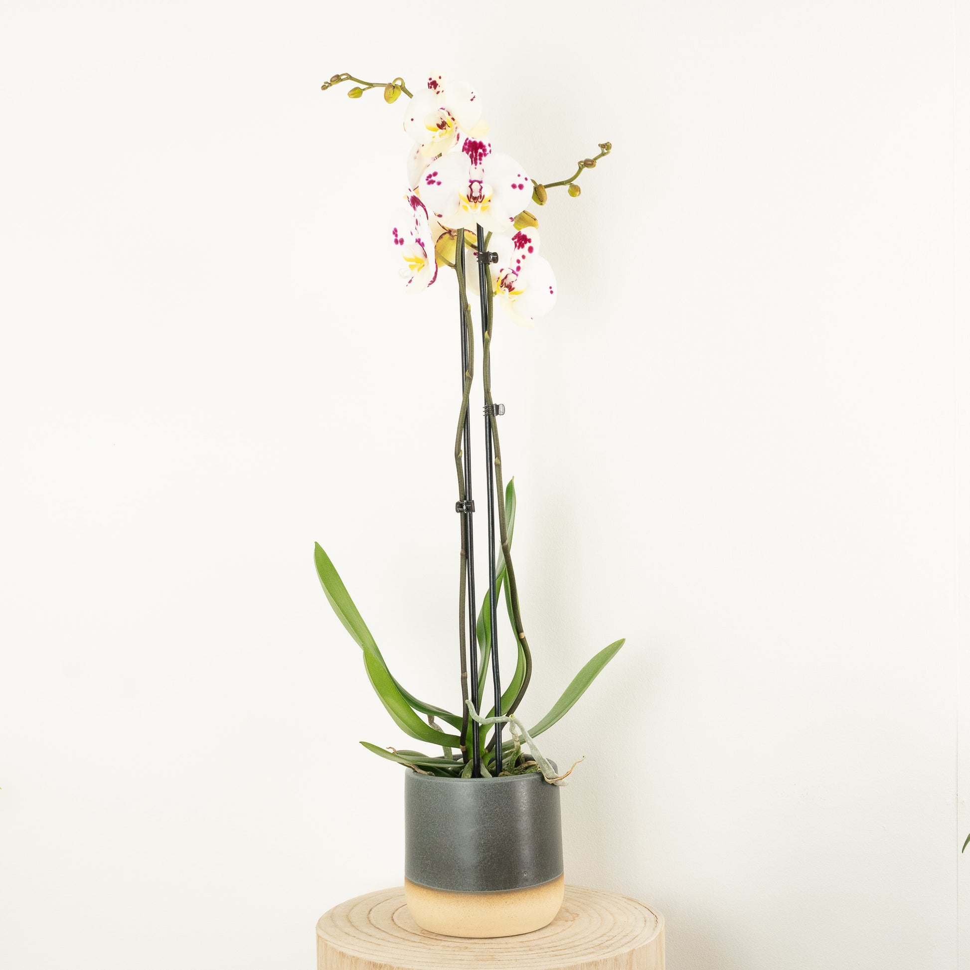 Phalaenopsis orchids, commonly known as Moth Orchids, are celebrated for their striking visual qualities and remarkable robustness. These orchids feature broad, fleshy leaves that can be beautifully mottled with shades of purple and grey, adding an artistic flair even when not in bloom. The flowers themselves are showy and long-lasting, often exhibiting intricate patterns and vibrant colours that make them a focal point in any setting.